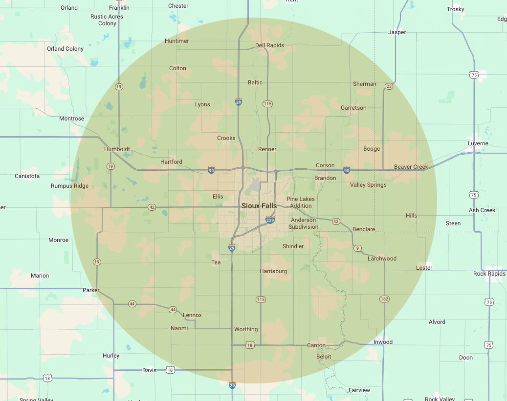 Sioux Falls might be our headquarters, but our service wheels don’t stop at city limits. If you’re in eastern South Dakota, chances are we’ve already helped your neighbor.